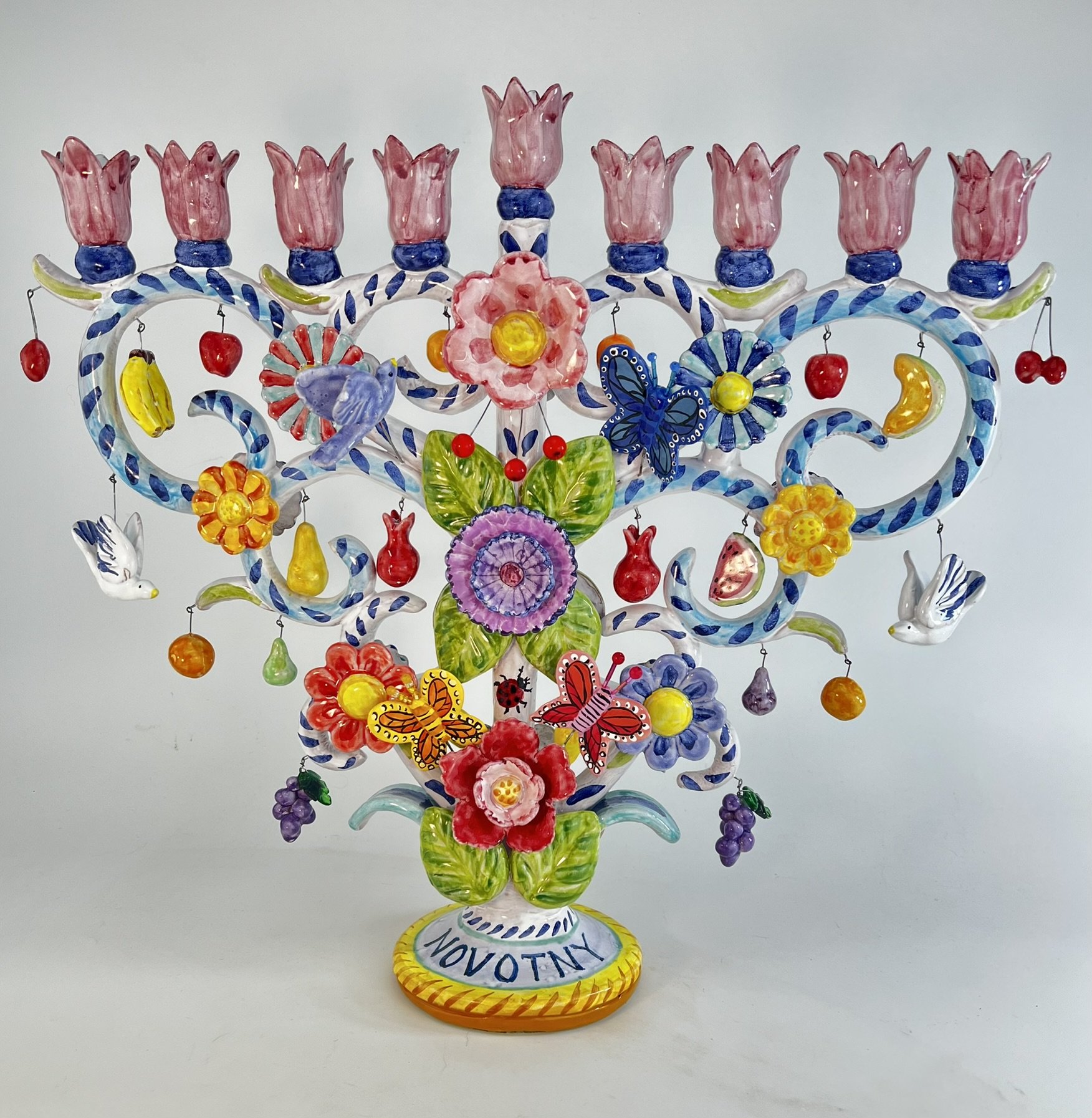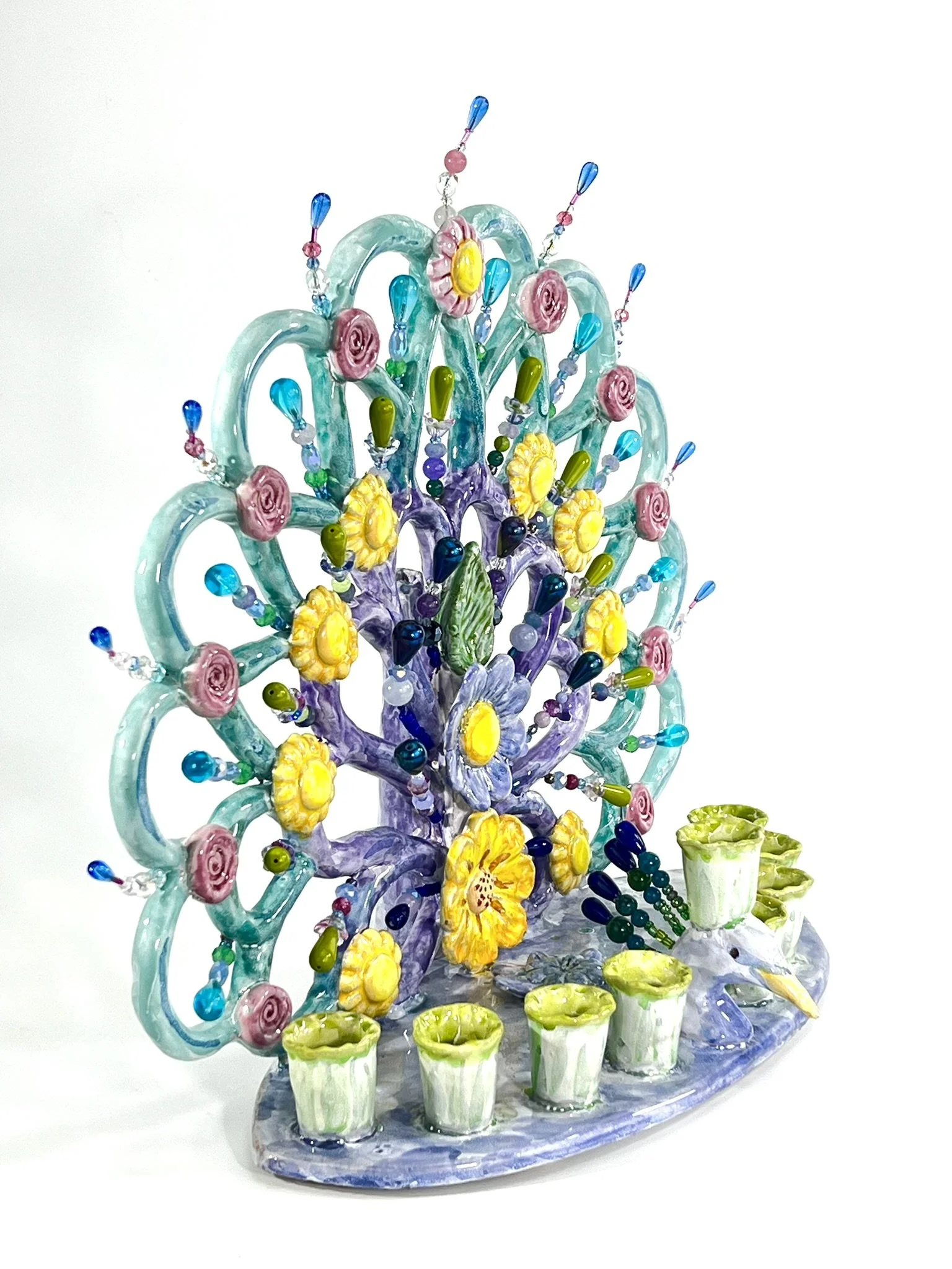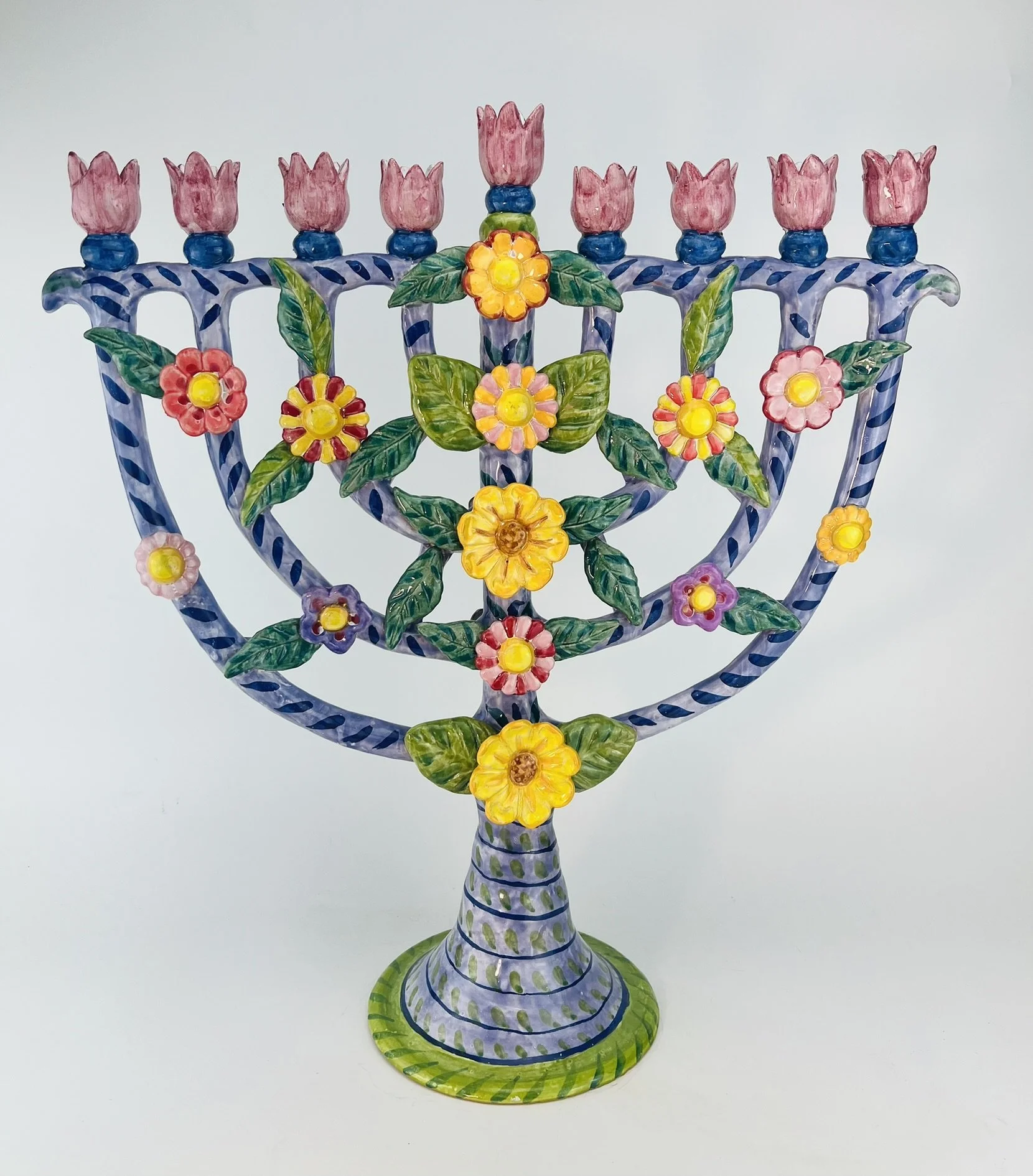One of a kind, majolica glazed terracotta, contemporary heirloom Judaica
